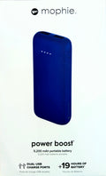 The Mophie® Power Boost® dual USB power bank is a sleek and efficient portable charging solution. The power bank features a robust 5,200 mAh capacity. Designed in an eye-catching blue color, this power bank ensures your devices stay powered on the go, making it an essential accessory for busy lifestyles. With dual USB ports, the device provides convenience whenever, or wherever, you need it.